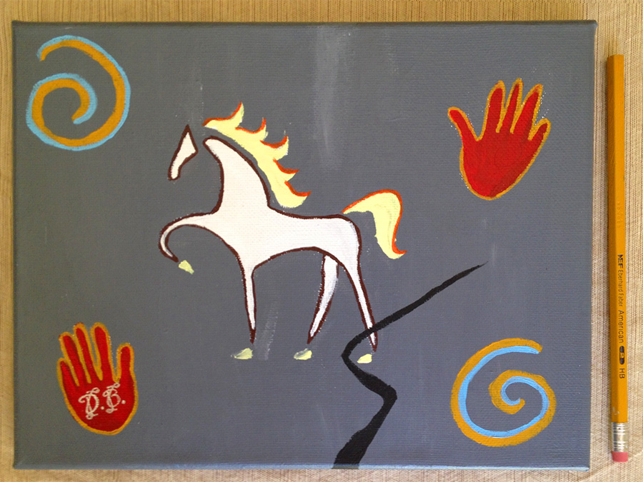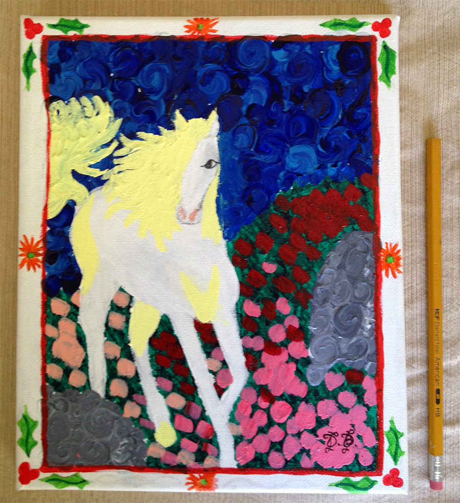 (Note the unsharpened pencil in each photo, which shows the scale of the painting.)
